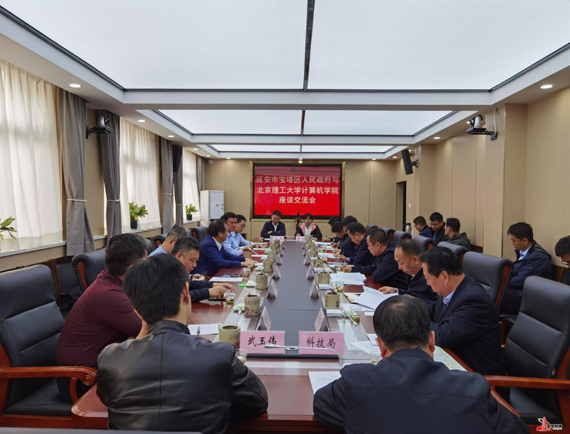 11月16日上午,计算机学院一行与宝塔区政府开展深化合作交流座谈。宝塔区委副书记、区长张明,市数据局副局长营玉强、宝塔区副区长李振江及区政府办、区委网信办、经发局(数据局)、科技局、数据服务中心、中国移动延安分公司等相关部门单位参加了本次座谈,会议由宝塔区委常委、副区长、北京理工大学挂职干部李振江主持。双方就如何结合学院专业优势与地区数字经济发展需求在人工智能、智慧城市、数字政务、红色文旅等领域开展合作进行了详细探讨,并达成了一系列共识。学院一行人员参访了“无锡·延安”智算中心、宝塔电商融合孵化服务中心和宝塔区城市数字治理融合指挥中心等地。