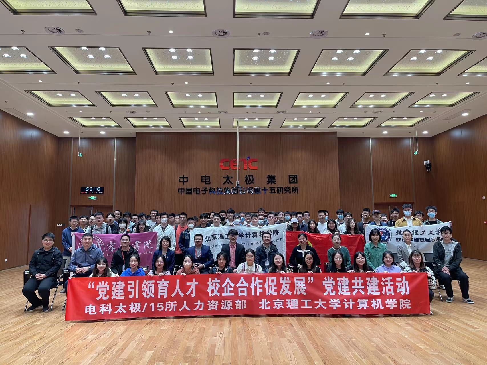 为畅通师生与企业的沟通渠道,了解行业发展态势,打通学生就业的“最后一公里”,扎实推进党建共建,搭建红色“1+1”工作平台,落实学院-书院协同,计算机学院主动作为,搭建平台,组织策划“企业直通车”系列活动,4月10日下午,北京理工大学计算机学院党委副书记、副院长奚英伦,校友干事柳文艳,就业干事杨毅,团委副书记马冠澜,本科辅导员曾杨杰,睿信学院团委书记秦奎伟,网安学院辅导员张宇,带队特立书院、睿信书院、网络空间安全学院、计算机学院的师生团队90余人赴中电太极集团走访调研。中电太极集团试验训练专业部主任李宁、人力资源部副主任白建川、人力资源部经理冀春苗接待了师生团队,并就党建共建、行业发展、学生就业等相关问题与师生团队进行交流。